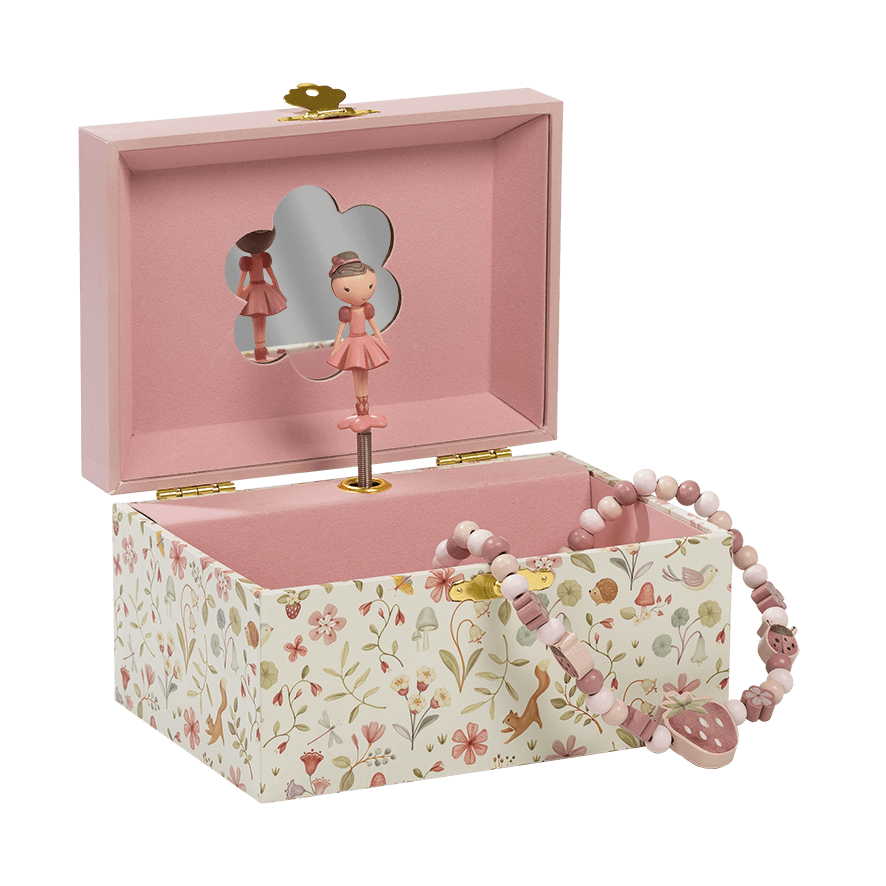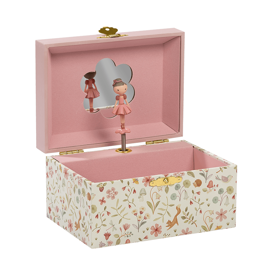 Make your little one happy with their very own musical treasure box for jewellery! Inside this beautiful jewellery box, Rosa is eager to show off her ballerina pirouette. Wind up the box and Rosa will twist and turn to the sweet music. This is the perfect gift your little one will cherish for a lifetime.