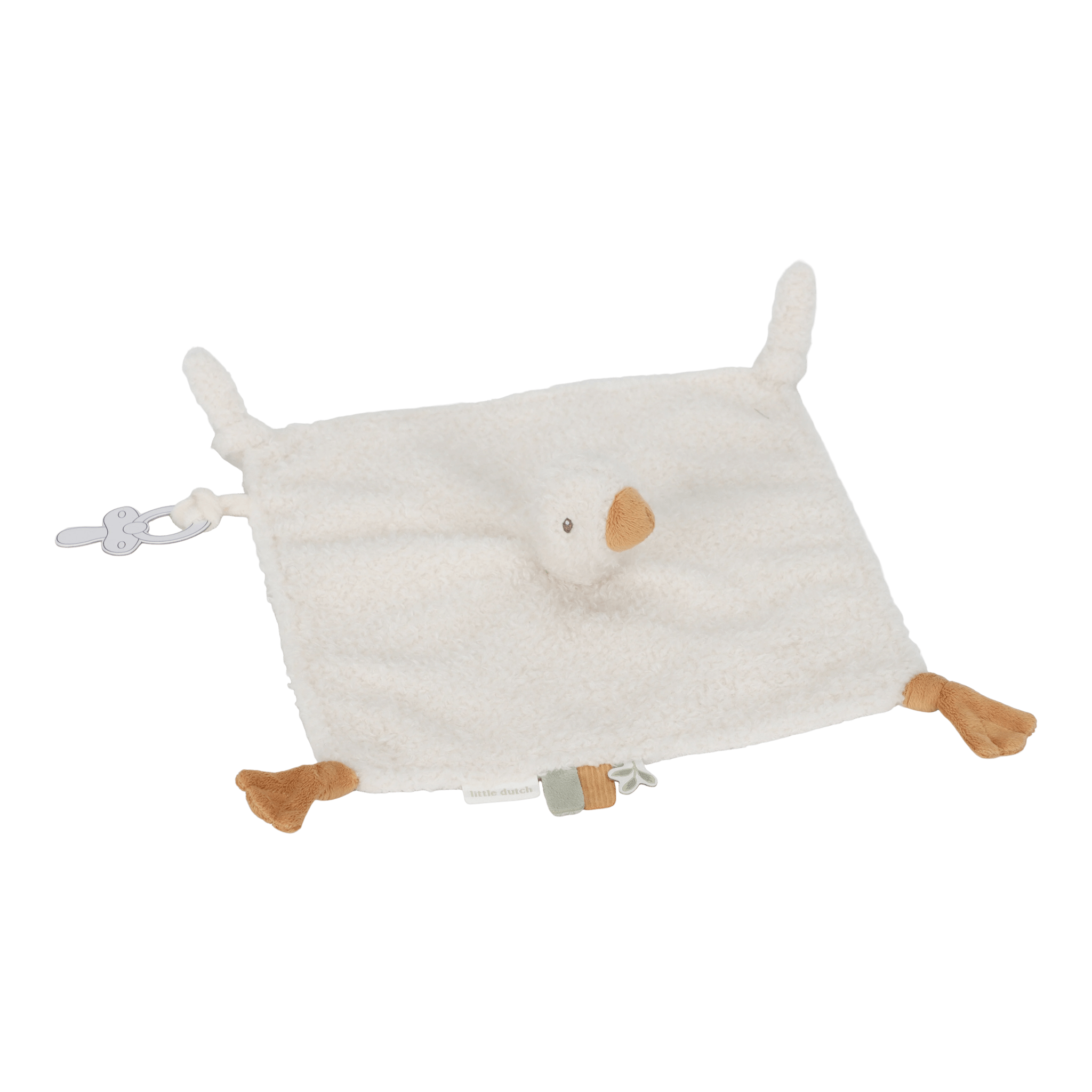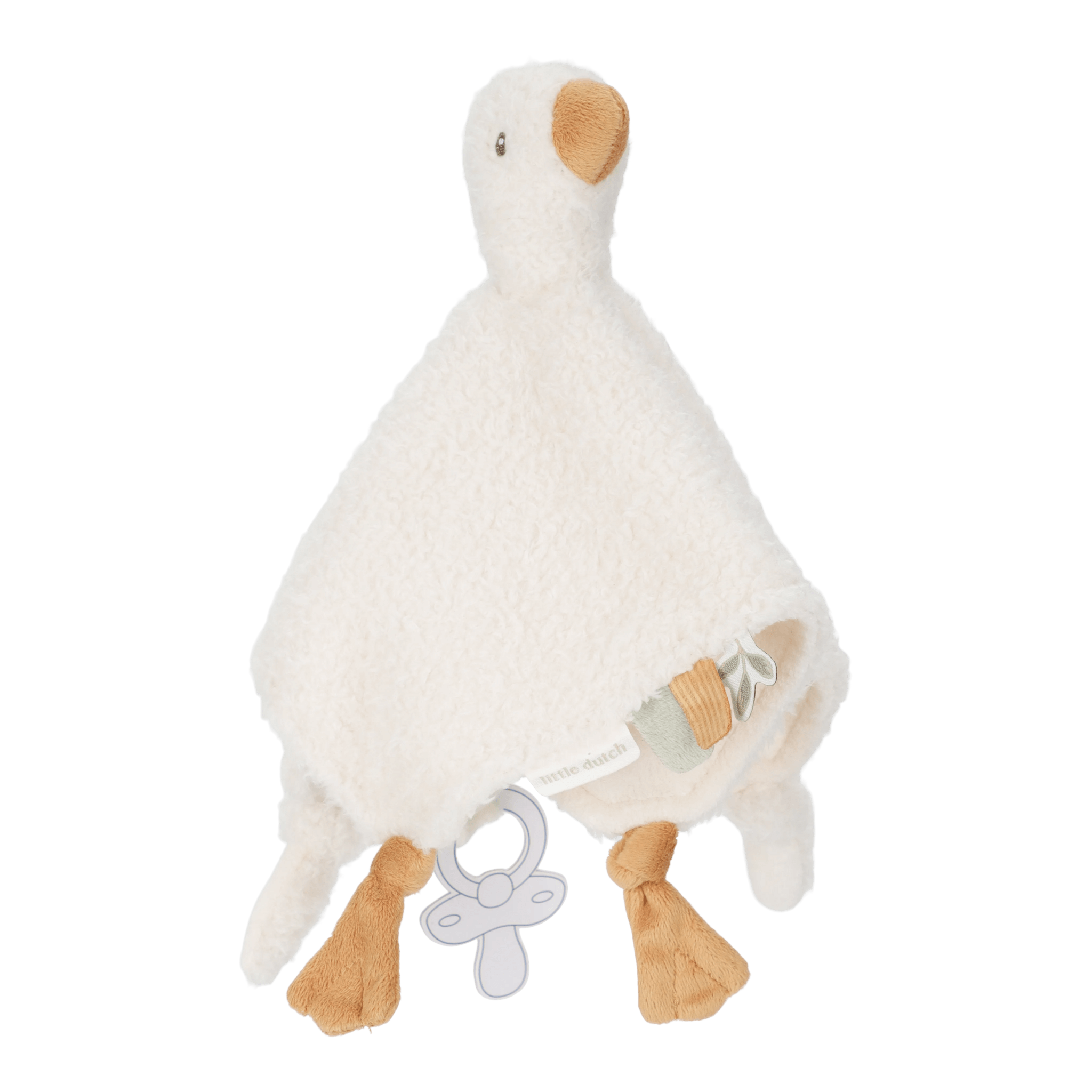 The sweet little goose invites endless cuddles, while tiny hands can explore the soft fabric. Perfect for comforting and taking along wherever you go. A familiar and cosy companion for every moment of the day.