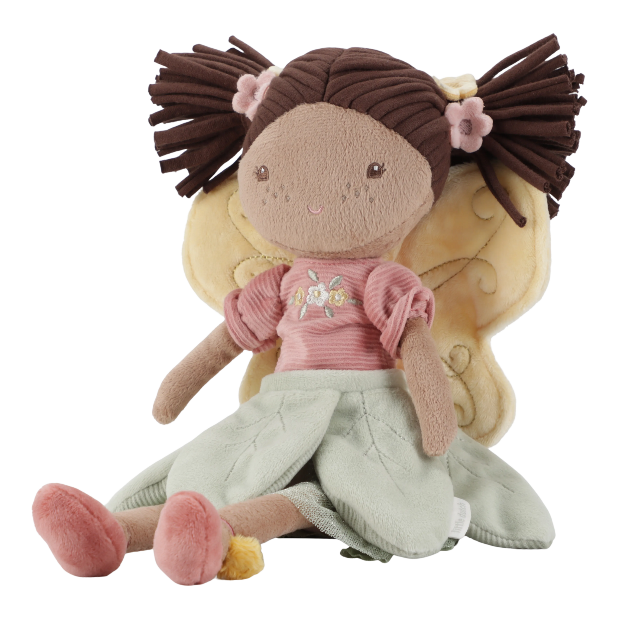Meet Fairy Evi, a soft plush fairy with wings from the Fairy Garden collection. She takes you on an adventure in the flower garden, among colourful flowers and bees. Fairy Evi is cuddly and perfect for little hands.