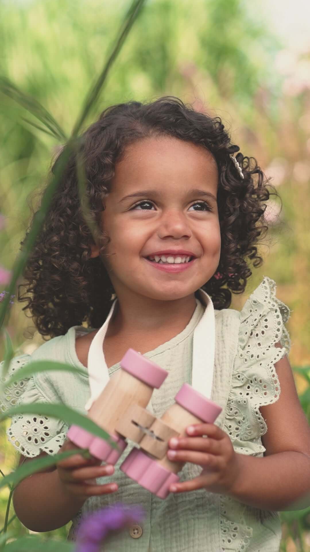 Explore nature with this wooden binoculars in the shape of a flower!