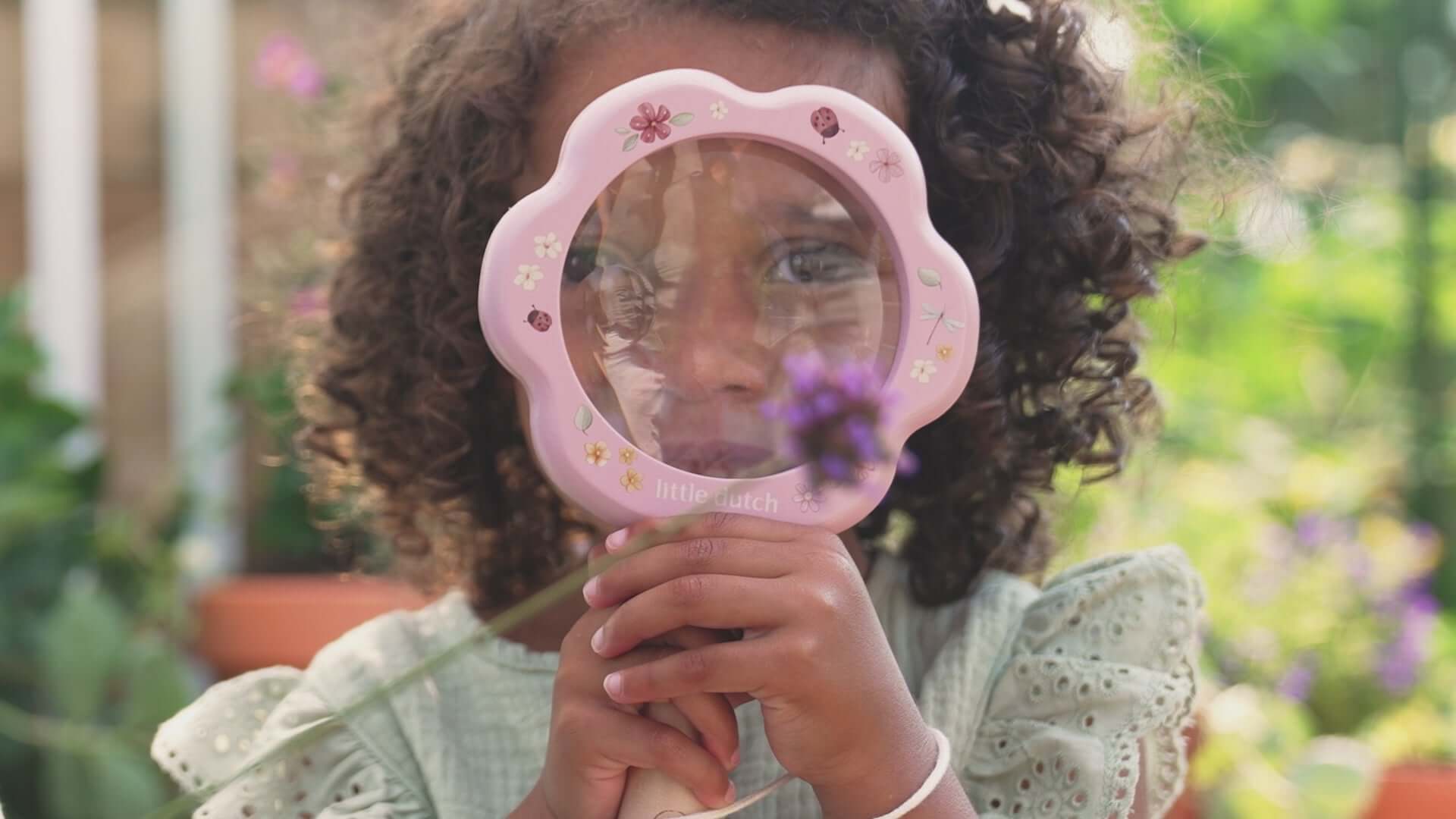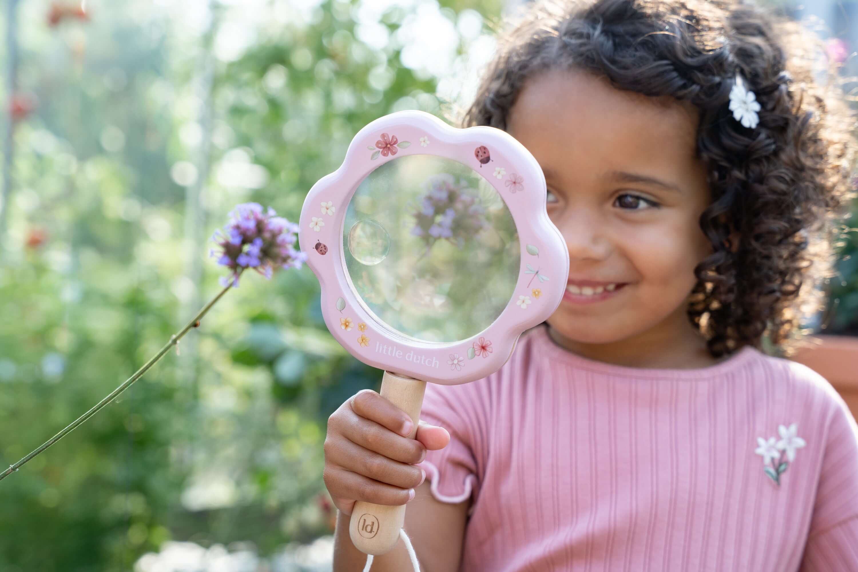 The sturdy wooden frame and handle provide a comfortable grip, while the beautiful illustrations from the Fairy Garden theme give it a playful look. The magnifying glass features an integrated extra small lens for an even more detailed view. With a handy cord for hanging, it is always within reach for curious explorers. Perfect for little adventurers who want to explore the world around them and track down small creatures.