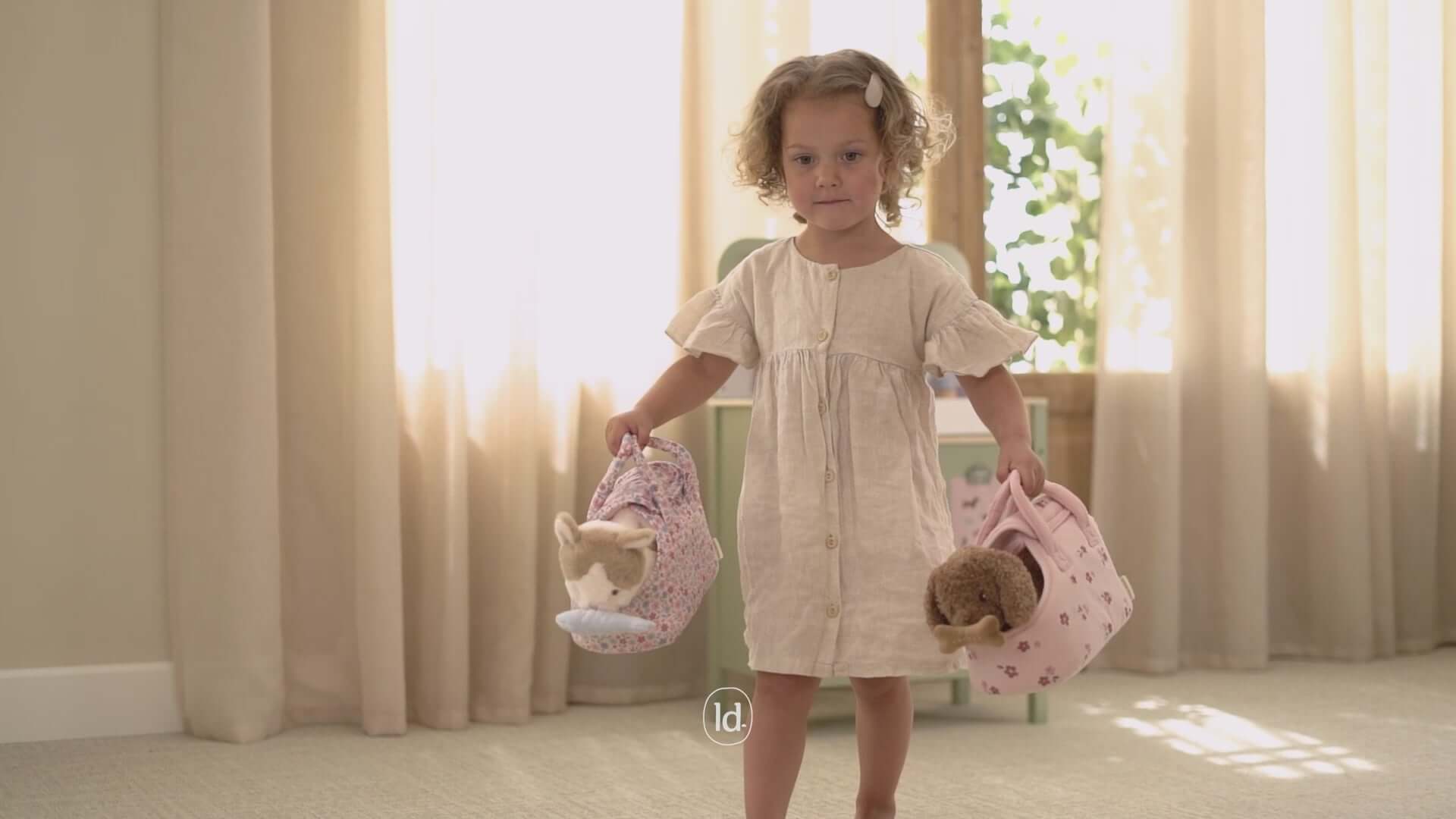 Snuggled up in a sweet floral bag, Jackie wears a cute collar and comes with a soft bone toy for tail-wagging fun. Always up for cuddles, adventures, or a cosy nap, this lovable doggy is the paw-fect companion for playtime and beyond. Get ready for endless puppy love!