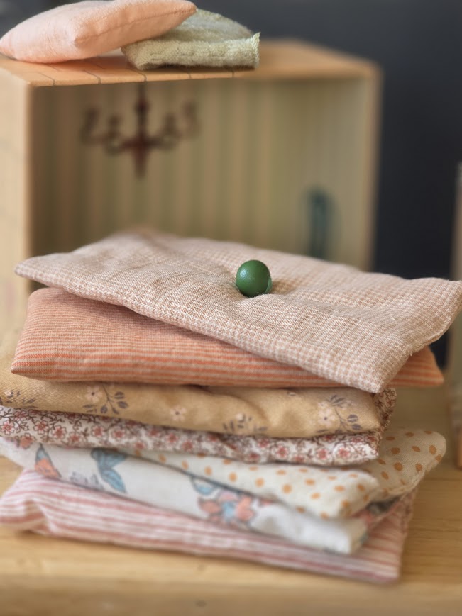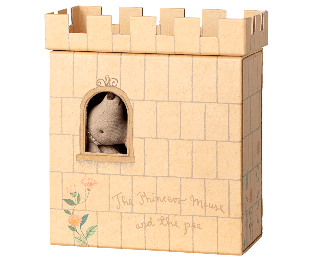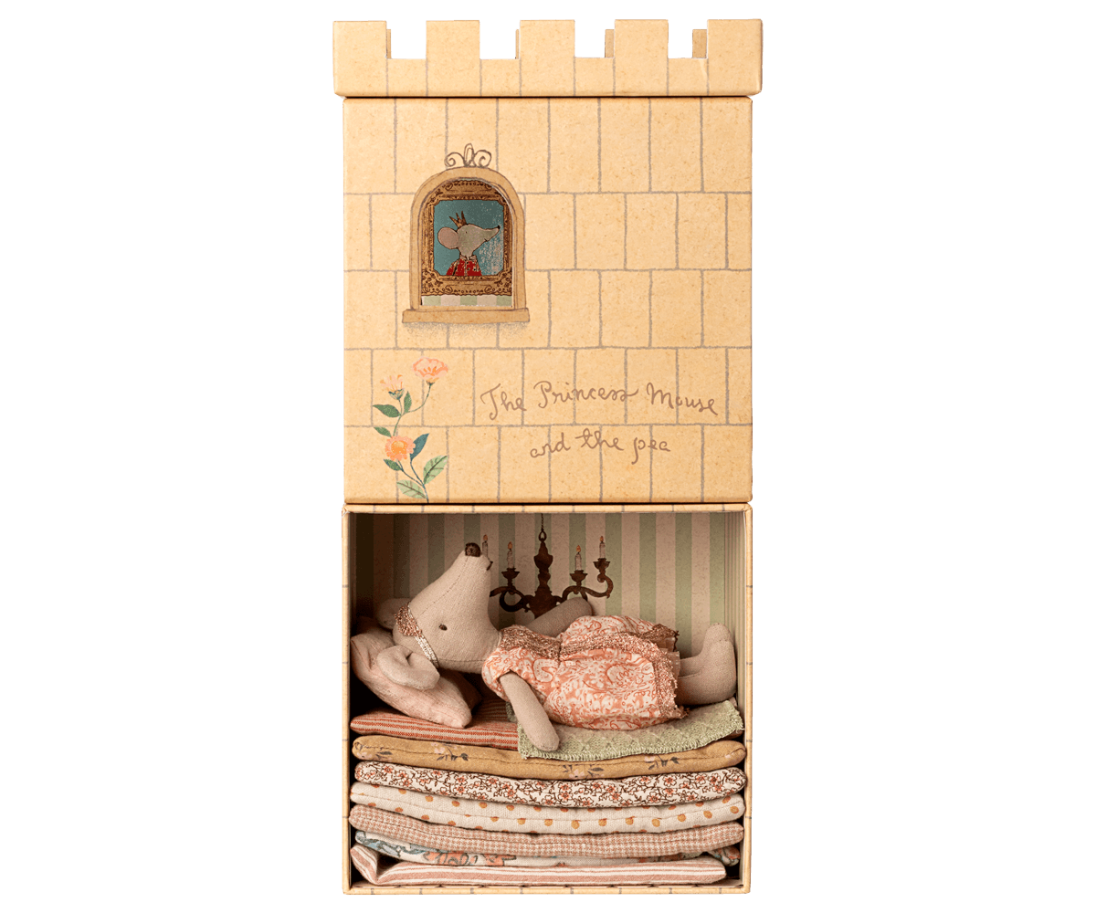 Once upon a time… Play-set inspired by the famous fairy tale Princess and the pea. This set includes a castle with mattresses, a pea sewn onto one of the mattresses and a princess mouse.